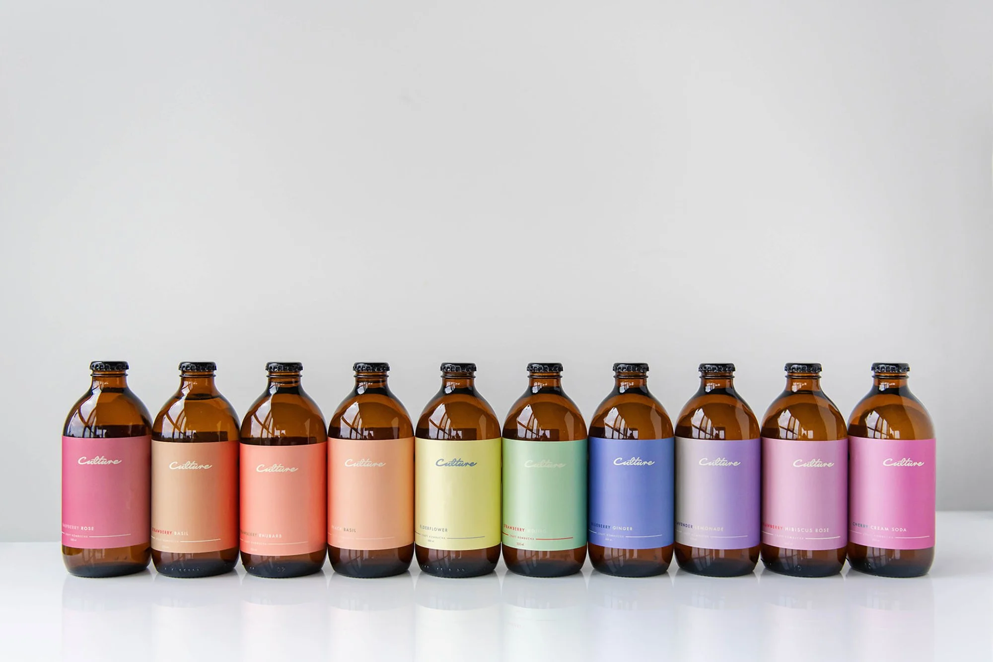 Packaging design for Vancouver based kombucha brand, Culture Craft Kombucha. The packaging was inspired by the colours of the seasonal fruits and ingredients and visionary founder Dan Larsen’s brewing process as well as minimalist scandi design.