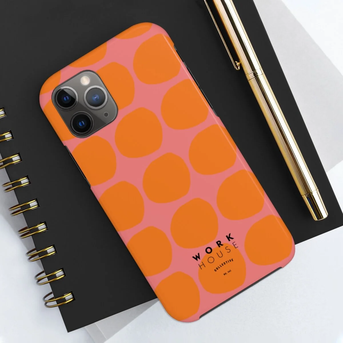 Our Dots Tangerine phone case was created from our hand painted illustrations. The design is inspired by mid century shapes and patterns.